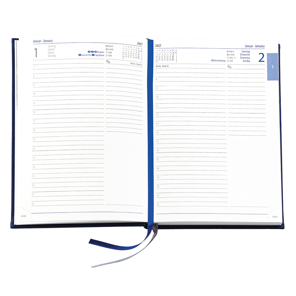 Tages- und Zinszählung Ferientermine D/A/CH Jahres- und Monatsübersichten Monatsvor- und -nachlauf Sonnenauf- und -untergang Große Auswahl an verschiedenen Einbandmaterialien und Farben |