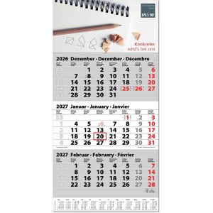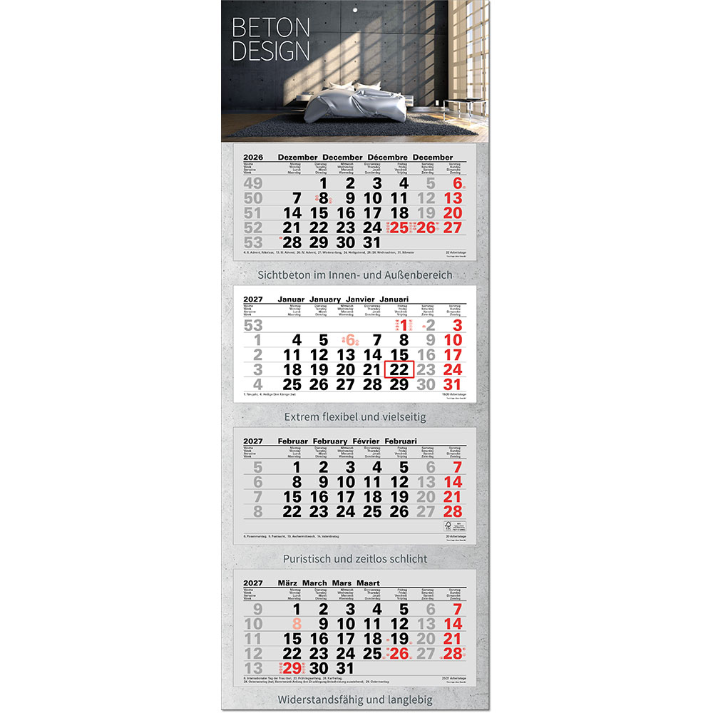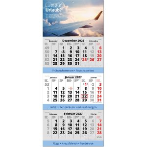 | Umfang | 1 Rückwand, 3 aufgeklebte Kalenderblöcke mit je 12 Monaten |